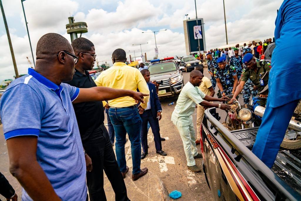Governor Babajide Sanwo-Olu apprehending traffic offenders