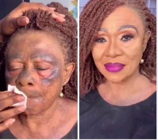 This unnamed woman was given a facelift by a make-up artiste but her work has received criticisms.