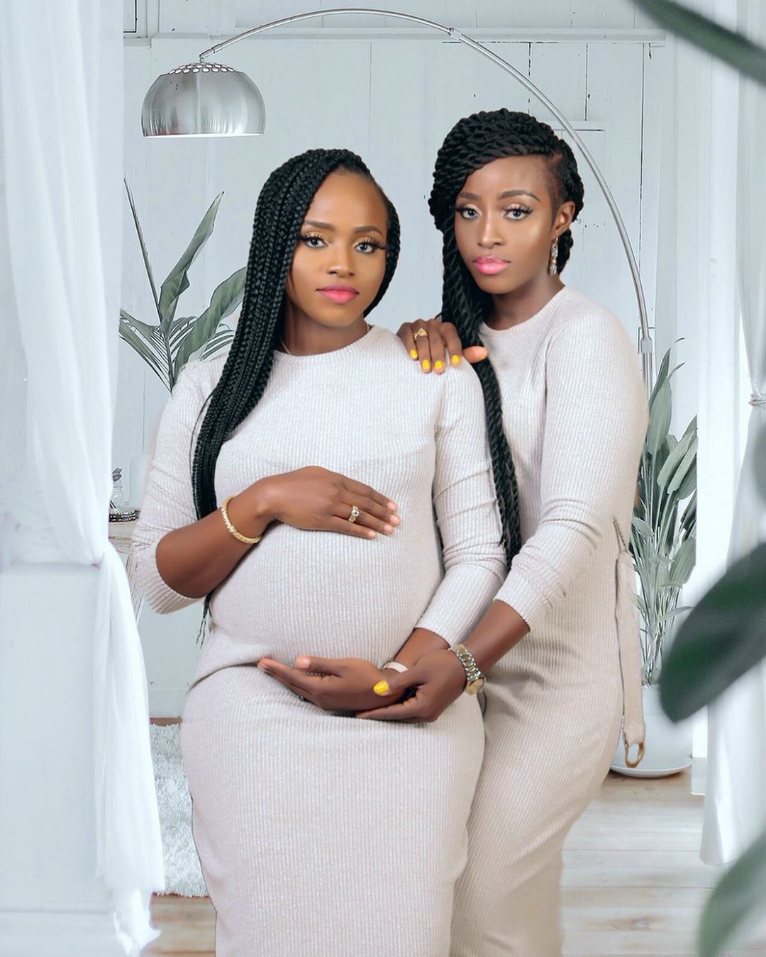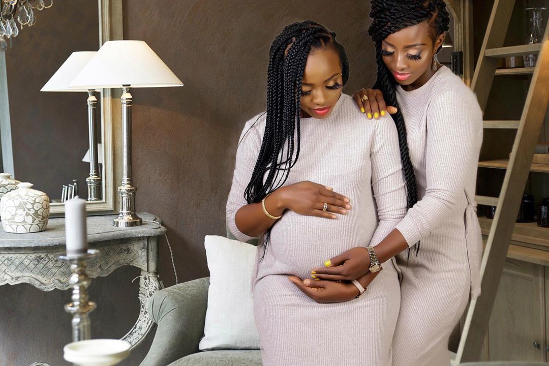 The expectant mother shared some lovely maternity photos of her growing baby bump with her twin sister JacQui Iman.