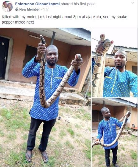 This man stumpled upon this python at 8pm yesterday. He then grabbed his motor jack and attacked the reptile.