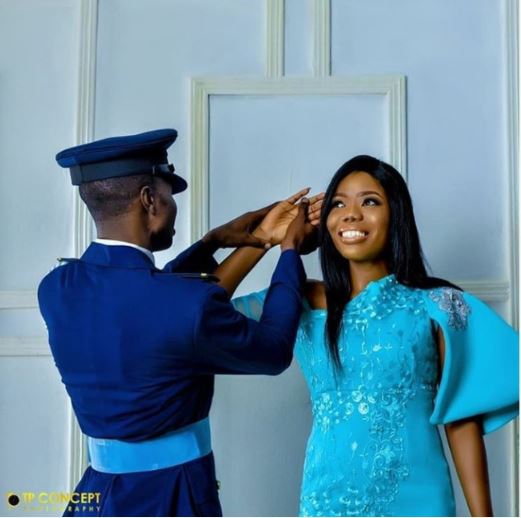 A Nigerian Airforce officer, Jeremiah and his fiancee, Deborah salute each other in lovely pre-wedding photoshoot.