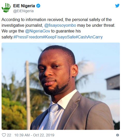 Nigerian civil society leaders and activists have asked the government to ensure the safety of Fisayo Soyombo, the undercover journalist who exposed the rot in the Nigerian prison system in an investigative report.