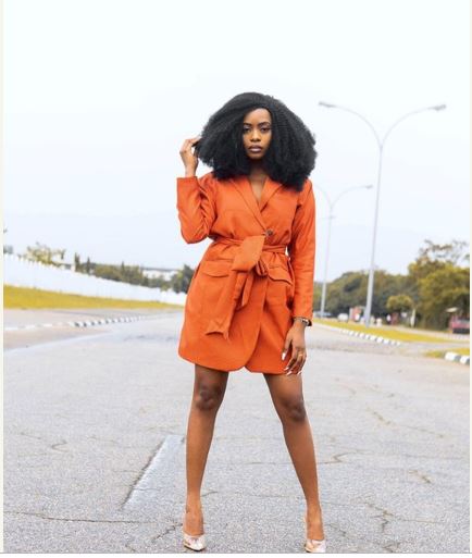 Kiki Osinbajo was seen standing on the road as she posed for pictures rocking a TY Bello-like hair-do.