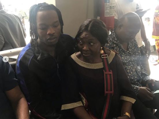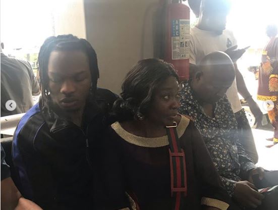 Naira Marley posed with his mother at the Ikoyi High Court in Lagos State while waiting for his court session to begin.
