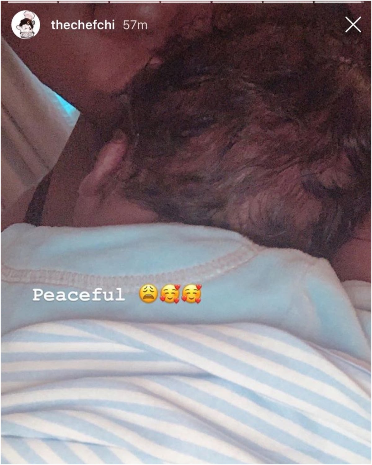 The doting new mom captioned the cute photo with the words peaceful and cute love emojis.