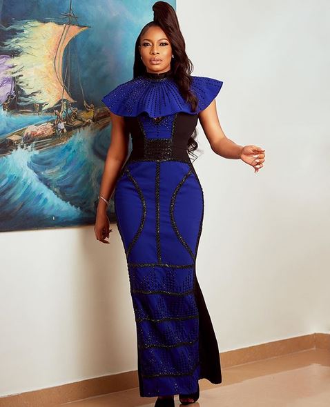 The Nollywood diva looked really georgeous in her blue dress which she wore to the Impart Artist fair in Lagos and got fans fascinated with her dress.