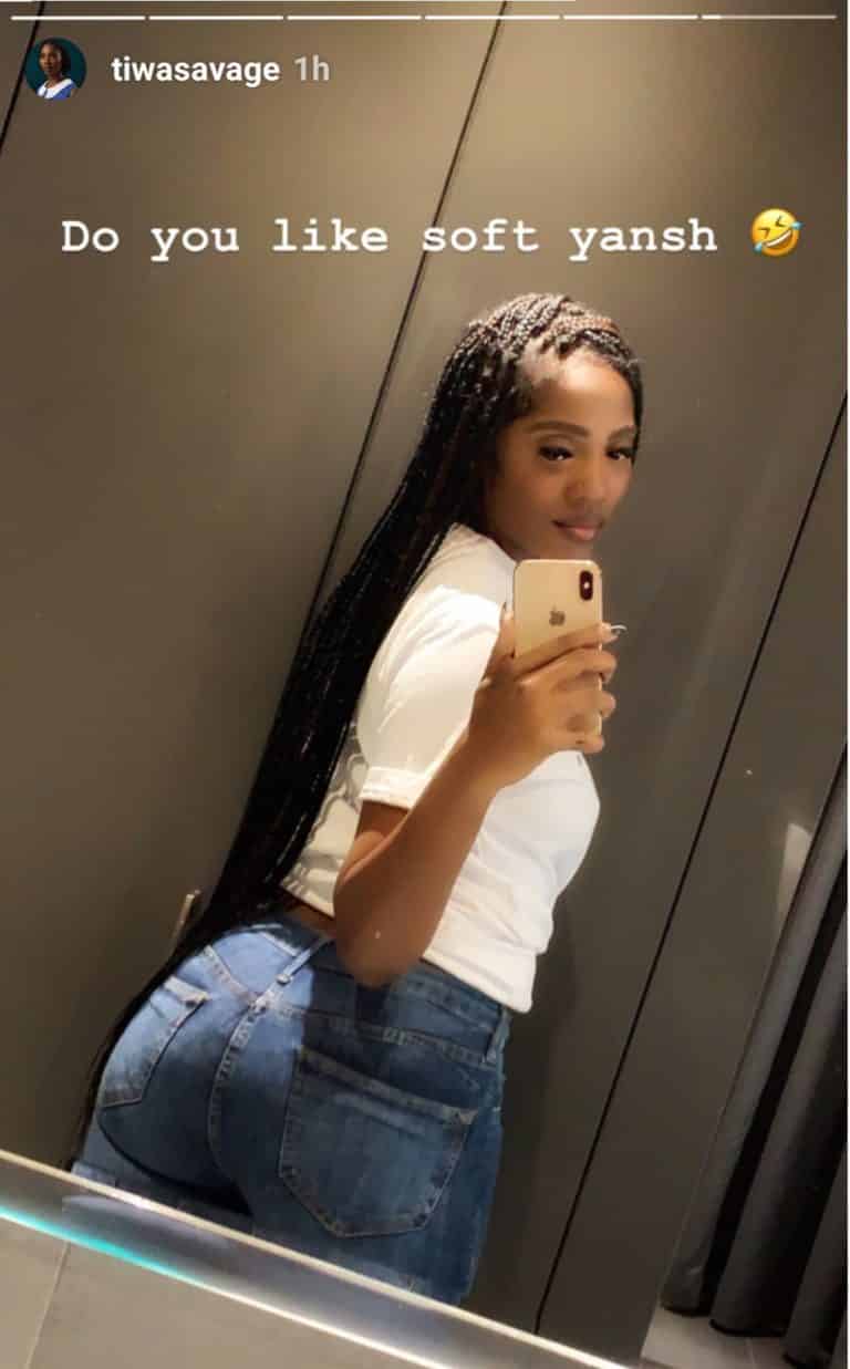 Tiwa posted a picture on Twitter some moments ago which she captioned; ‘issa soft yansh to press’. She posted same picture on her Instagram story, saying ‘do you like soft yansh’.