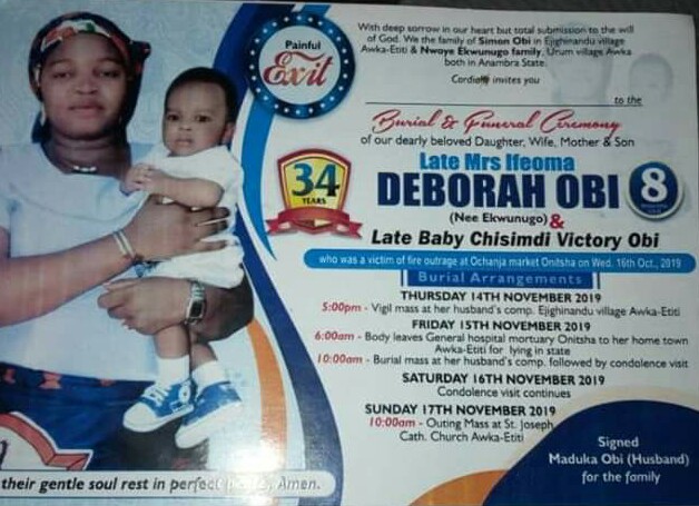 Burial poster of woman who died with her child in the Onitsha fire incident is out.