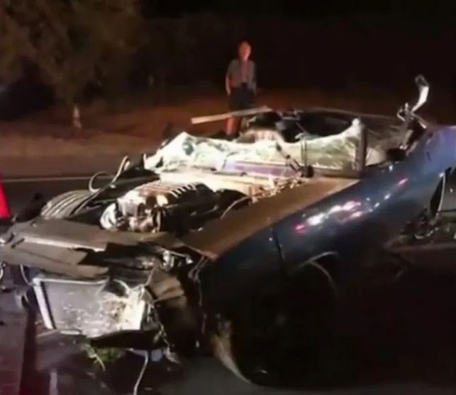 The Hollywood actor was a passenger in a vintage-style muscle car when the driver lost control, sped down an embankment and smashed into a tree near Malibu.