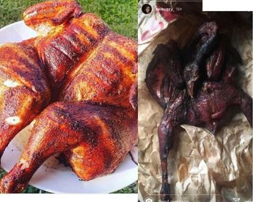 A social media user named Uforo Essien has told a short story of how his cousin saw a beautiful smoked chicken online and ordered it.