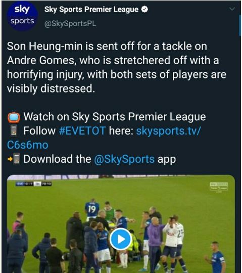 Tottenham and Everton players were left distressed by the incident as Gomes needed immediate medical attention. He left the field on a stretcher to the applause of Goodison Park.