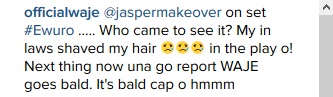 But she let her fans know that she didn’t actually cut all of her hair off; the makeup team simply used a bald cap to create the illusion. "Next thing now una go report WAJE goes bald. It's bald cap o hmmm," she added.
