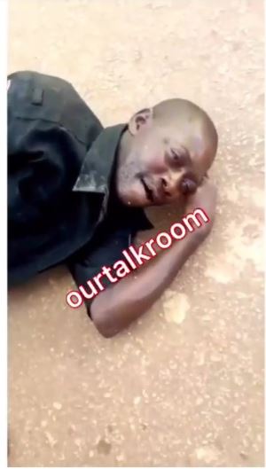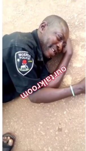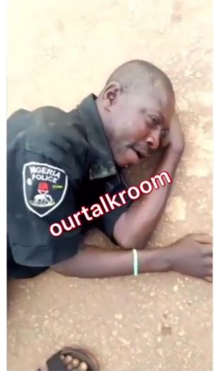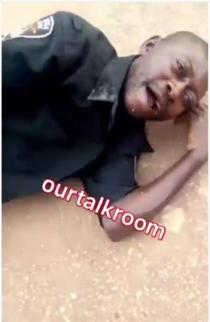 According to viral short clip uploaded online recently, a heavily drunken Nigerian police officer was spotted on the floor.