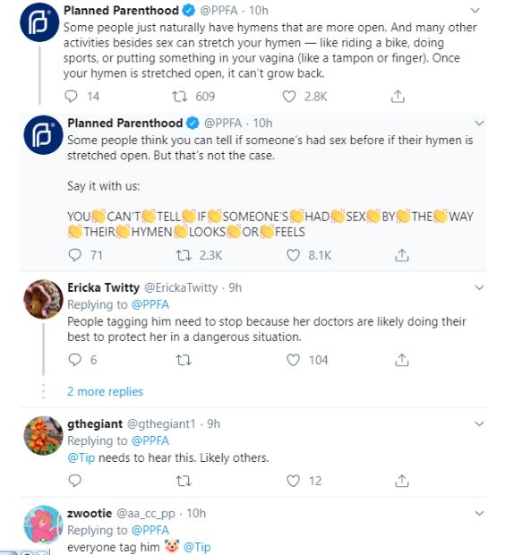 T.I.'s revelation generated outrage and Planned Parenthood weighed in on it by explaining what virginity is and how "it has absolutely nothing to do with your hymen.