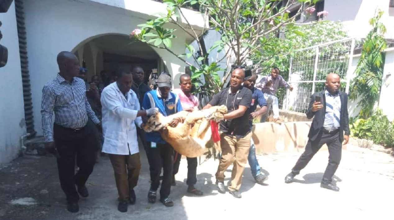 It took the joint operation of operatives of the Lagos State Task Force together with the State Ministry of Agriculture and medical personnel from the Faculty of Veterinary Medicine, University of Ibadan on Monday to successfully evacuate and relocate the lion to a zoo at Omu Resorts in Lekki. The lion was eventually evacuated from the house after over 72hours surveillance.