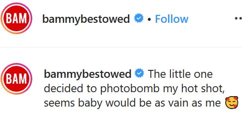 Her post read; “The little one decided to photobomb my hot shot, seems baby would be as vain as me.