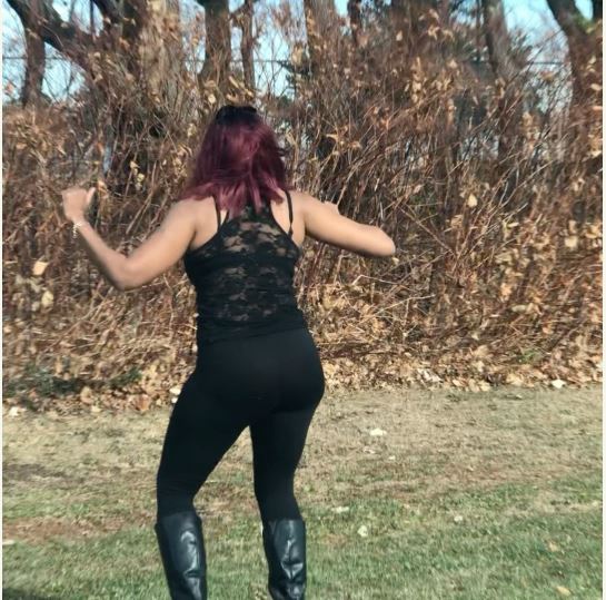Ex-beauty queen-turned-US nurse, Regina Askia-Williams dances to Flavour's song in an energetic way.