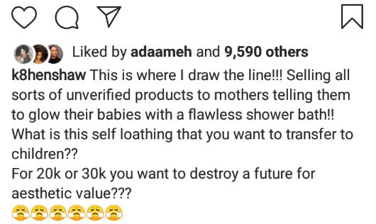 "This is where I draw the line!!! Selling all sorts of unverified products to mothers telling them to glow their babies with a flawless shower bath!!