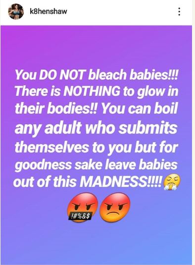 Ace Nollywood actress, Kate Henshaw has taken to her social media space to spark out over the skin transformation method involving a hotbath to wash away coloured skin.