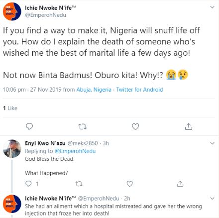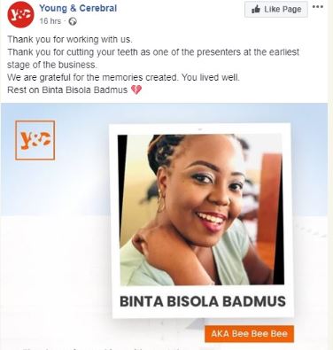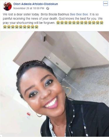 Media personality, Binta Badmus, has passed on allegedly due to a medical error.