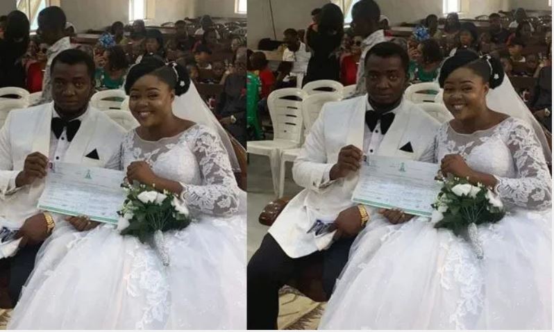 The church page shared a photo of the couple and wrote; An interesting wedding today at Seventh-day Adventist Church, Ruuokwurusi.