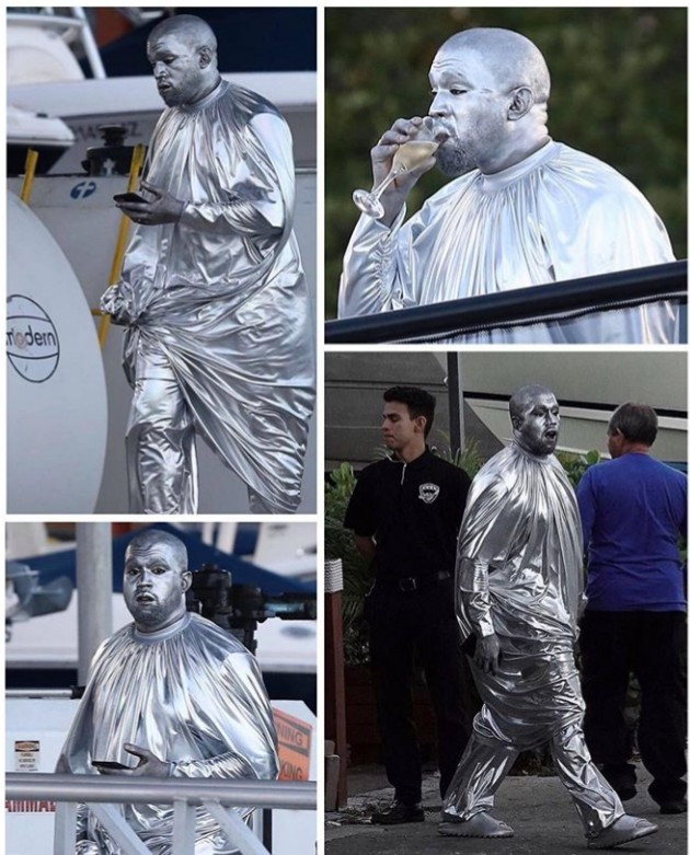 Kanye West stepped out in head-to-toe chrome for his Opera, Mary, which took place at Miami Marine Stadium.