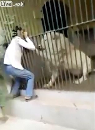 Zookeeper Kannu Piraditta was attacked by a lion through the bars of its enclosure during feeding time at a zoo in Pakistan as onlookers screamed in horror