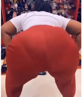 The mother of one was seen enveloping the camera lens of her mobile phone with her big backside shaking to a song.