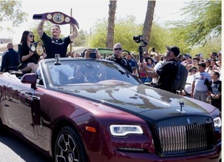After dethroning Britain’s Anthony Joshua in June, Ruiz and his wife showcased two of his four belts atop a borrowed Rolls-Royce to over one-third of the town’s 17500 population.