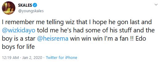 “Rema win win win I’m a fan !! Edo boys for life.”