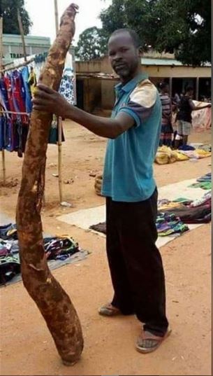 This farmer has showcased a massive tuber he harvested from his farm after a long year working.