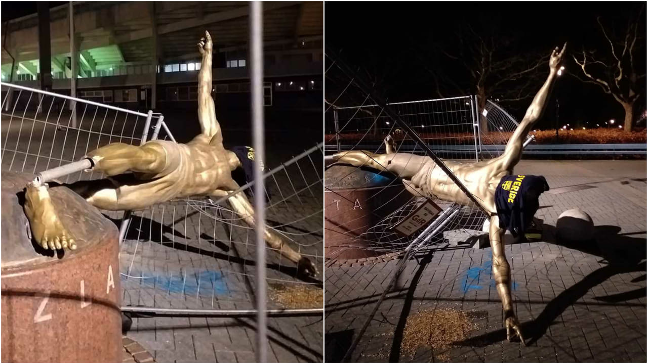 A statue of Zlatan Ibrahimovic erected in his hometown of Malmo has fallen victim to another act of vandalism.