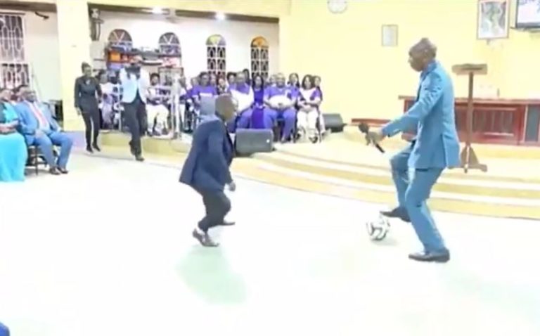 A pastor has left his congregation members stunned after performing deliverance with football.