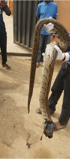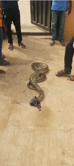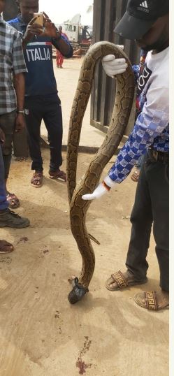 Some excited workers later took the python away to process it for consumption. It should be noted that Nigerians have been actively eating snakes and other weird wild animals in recent times.
