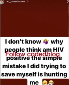 Nigerian cross dresser, James Brown has taken to his social media page to deny his HIV positive status.