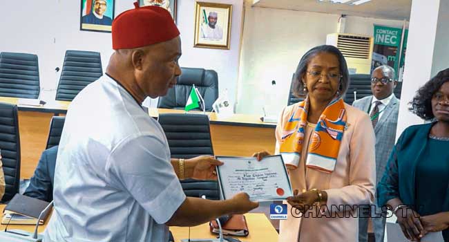 The All Progressives Congress Governor-elect in Imo state, senator Hope Uzodinma has received the Certificate of Return from the Independent Electoral Commission (INEC).