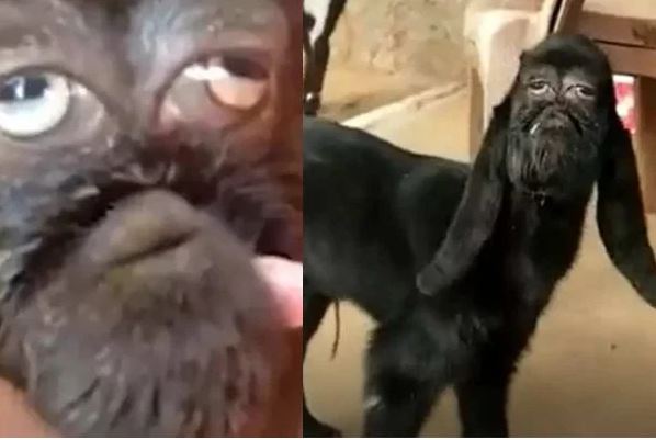 Owner Mukeshji Prajapap posted a short video of the black goat with a strange face inside his hut earlier this week.