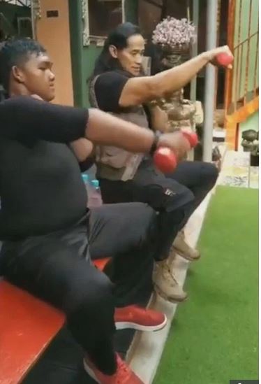 In a video, he is seen working out with his personal trainer to perform squats and lift weights.