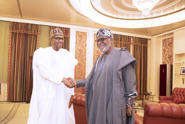 President Muhammadu Buhari on Tuesday met with the Ondo State governor, Mr. Rotimi Akeredolu, at the Presidential Villa, Abuja