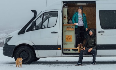 The pair adapted their Mercedes Sprinter van to suit the cat.