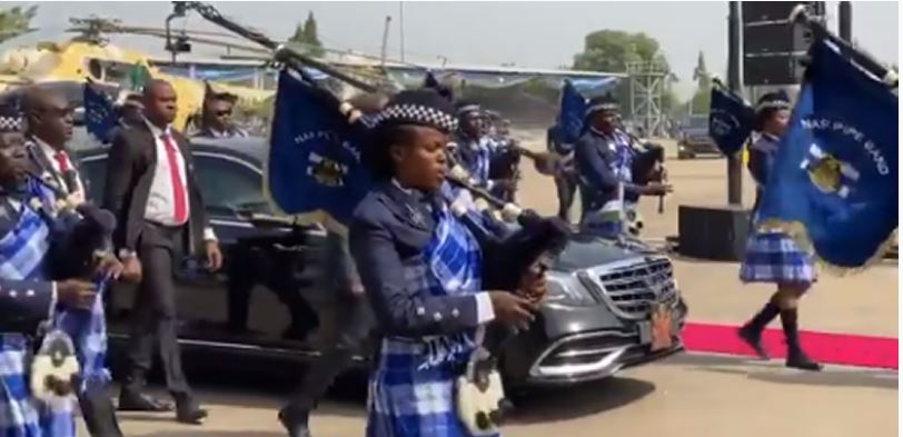 President @MBuhari arrives Eagle Square for the induction ceremony of Nigerian Air Force 3 brand new combat helicopters. Under this administration, NAF has procured and inducted 22 fighter aircrafts and helicopter gunships, and 17 additional aircrafts are expected. pic.twitter.com/9HgIn5mHEi