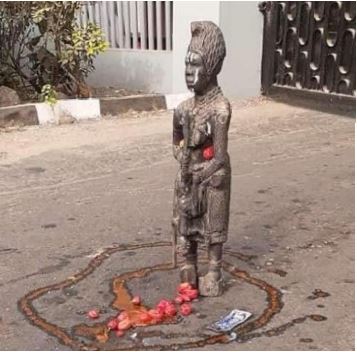 A student of UI, who is an eyewitness, narrating his experience to Tribune Online, said, on arrival at the UI gate Friday morning, he saw the strange object, a wooden image carved in human form, carefully placed in front of the entrance gate.