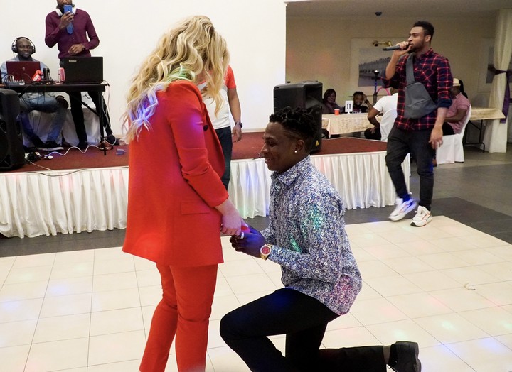 Local reports show that the talented artist proposed to his girlfriend, Nadia during the African community Valentine's day party organized by Mr. Lawrence and Mr. Philip Richey of Award & Fun Entertainment Group, Russia.