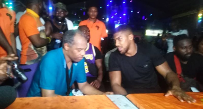 Anthony Joshua, the wtorld boxing champion is enjoying his stay in Nigeria, with a visit Thursday night to the Afrika Shrine in Ikeja Lagos, where he was hosted by the high priest, Femi Kuti.