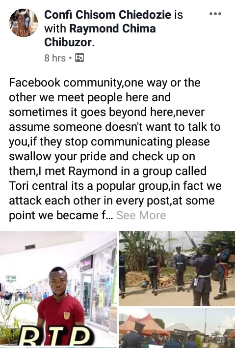 Acording to him, he found out about the sad news as he was about to remove Raymond from his Facebook friends' list because he thought the deceased had been ignoring him.