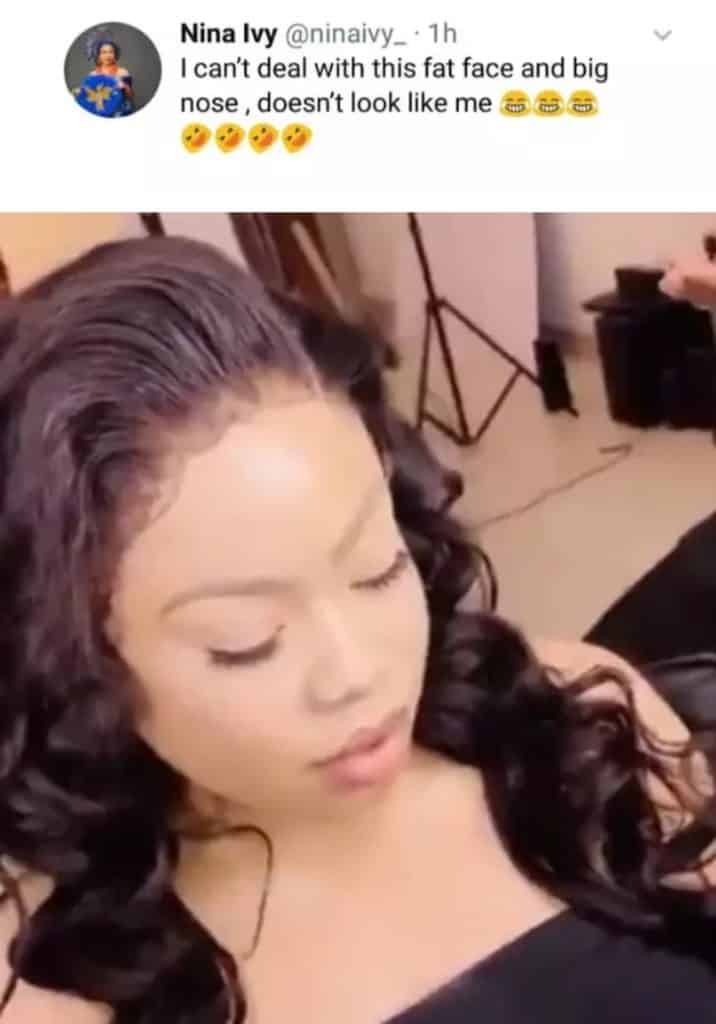 The reality star from Imo state who recently got married to her absentee husband took to her twitter page to complain about her swollen nose, fat face and more.