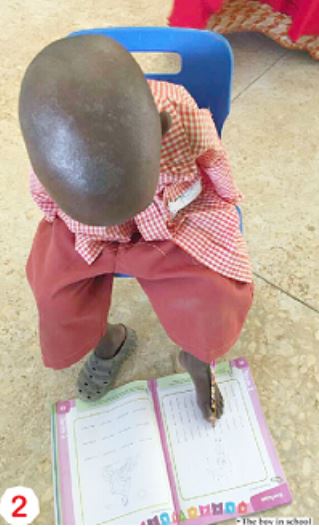 “I made further enquiries about the situation. I sent for the mother to bring him to school and I gave him admission into nursery 1C in my school. Today, Umar uses his toes to write and is doing very well in school. He passed all his papers during the last term.
