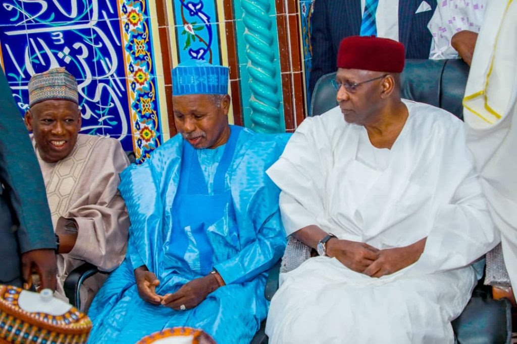 Abdullahi Ganduje, governor of Kano state, Abba Kyari chief of staff to President Muhammadu Buhari; Aliko Dangote, billionaire businessman; and Aminu Masari, governor of Katsina state were among those who attended the wedding fatiha of Hassan, son of Muhammad Adamu, inspector general of police.