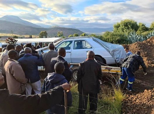 Villagers watched in awe as Pitso in his car, was towed to his grave in the family grave yard.