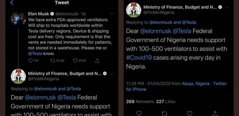 Nigerians on social media have blasted the Federal Government for begging United States billionaire, Elon Musk, for ventilators to tackle the COVID-19 pandemic.